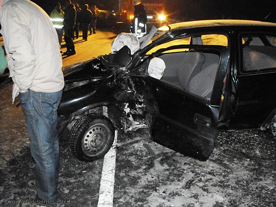 Am Abend des 19.12.09 wurde die Feuerwehr zu einem Verkehrsunfall mit eingeklemmter Person gerufen. Als die Kameraden auf dem Weg zum Einsatz waren, wurde dieser durch die Leitstelle abgebrochen. Die verletzte Person war bereits aus dem Fahrzeug befreit. Kurz nach dem Einsatzabbruch, wurde die Feuerwehr jedoch noch einmal alarmiert. Der Rettungsdienst hatte ein Fahrzeug zur Sicherung und Ausleuchtung der Einsatzstelle nachgefordert. Nach Eintreffen der Polizei konnte die Einsatzstelle übergeben werden. |