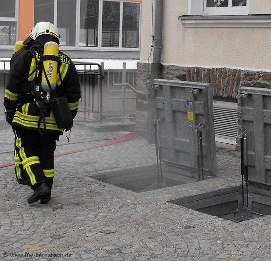 Am Freitag dem 30.01.2009 drangen Nebelschwaden aus dem Keller der Grundschule Bernsbach und mit lautem Tatütata kam die Feuerwehr Bernsbach zum Einsatzort.